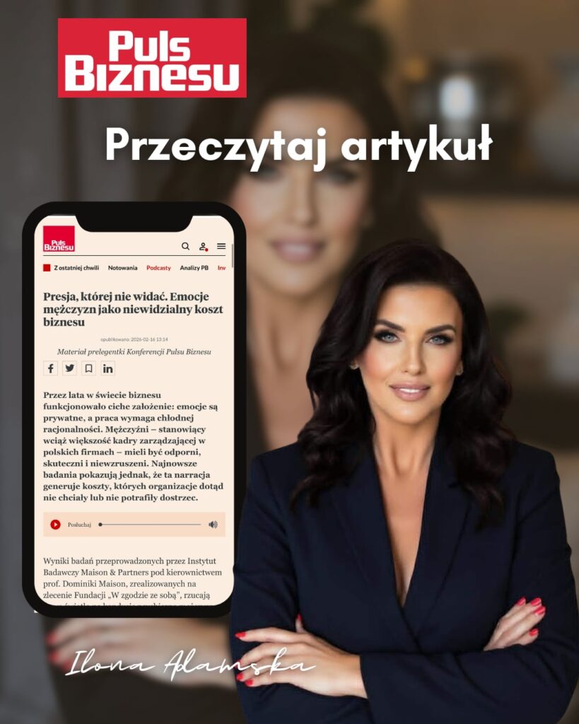 Więcej o presji mężczyzn w świecie biznesu w najnowszym artykule Ilony Adamskiej dla Pulsu Biznesu.
